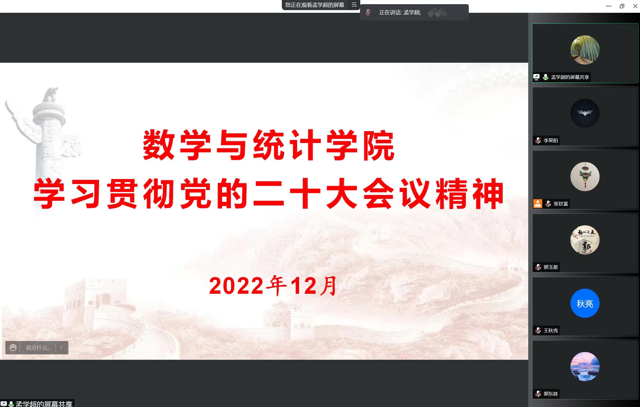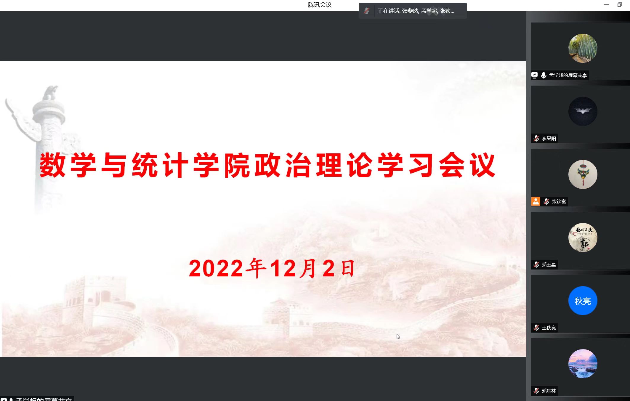 2022年12月2日,williamhill中国召开全体教职工政治理论学习会议,学院领导班子、全体教职工通过腾讯会议在线上参加了此次会议,会议由院长张斐然主持。