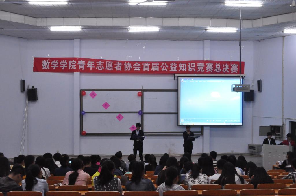 为了增强青年志愿者对公益活动的理解和关注,激发同学们对青年志愿者服务的热情,共创文明校园,数学与信息科学学院于2016年5月27日晚7点在大学生文工团礼堂举办了首届公益知识竞赛。数学与信息科学学院党总支副书记陈东、校团委组织部部长校青协指导老师王庆、数学与信息科学学院团总支书记姜素华、文化路校区青协主席刘金湘、数学与信息科学学院青协首任主席张明明应邀参加活动并担任大赛评委。