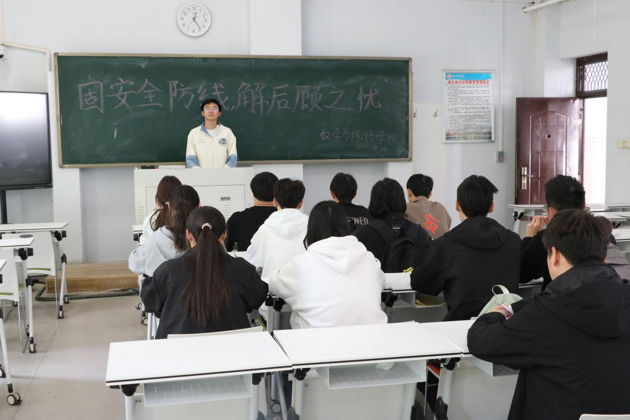 为使同学们了解国家安全相关的法律法规、政策方针以及掌握安全防范技能,williamhill中国于2025年4月14日中午12点在睢阳校区一号教学楼103开展了“固安全防线,解后顾之忧”主题活动。本次活动由学院青年志愿者协会和团委学生会办公室联合承办,面向全校学生开展。
