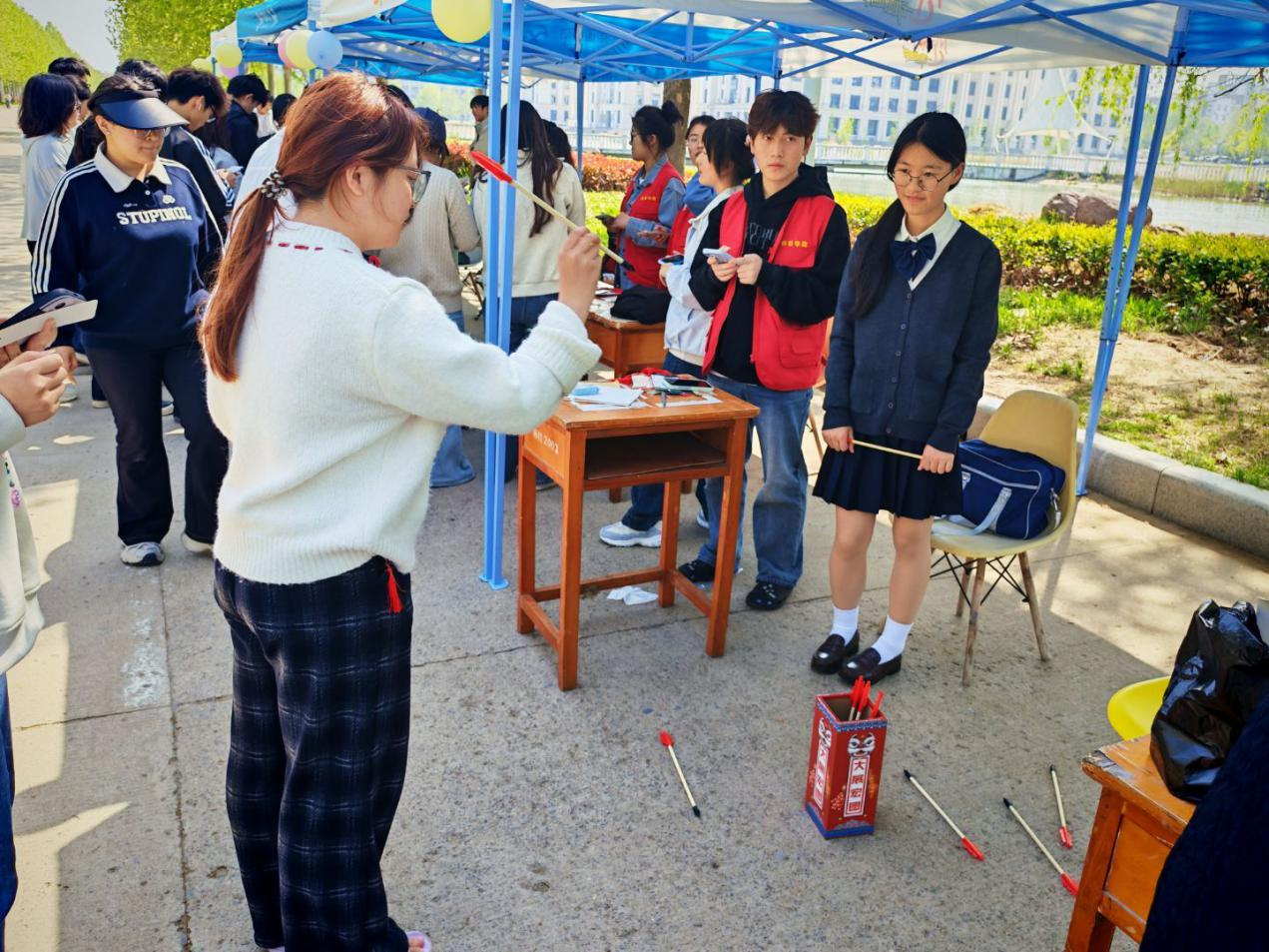 动静结合的趣味活动精彩上演,学子们在笔墨与竞技中收获成长与欢乐。在“笔书数理之美,字展学子风华”活动现场,同学们凝神静气,认真书写汉字、数字与数学符号。一笔一画间,既有对汉字文化的敬畏,也有对数理逻辑的严谨诠释,让数理之美跃然纸上。与此同时,“趣味投壶竞技 乐享运动时光”活动同样备受欢迎。同学们在指定距离内手持箭矢,瞄准壶口反复调整姿态、精准投掷,箭矢入壶的瞬间满是成就感。在传统投壶的互动体验中,大家不仅放松了身心,更真切感受了传统游戏的独特乐,在欢声笑语中拉近了彼此距离。