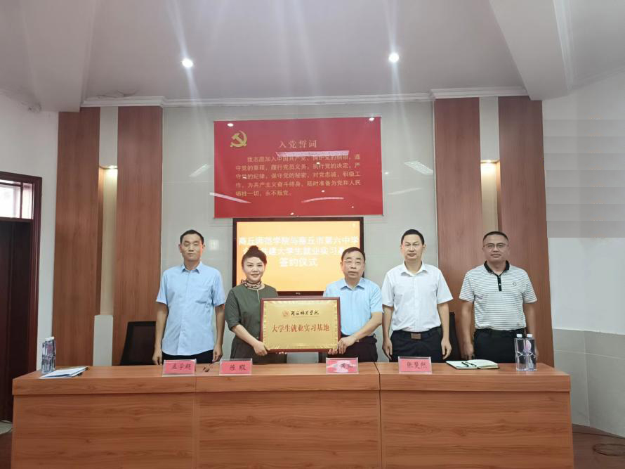 随后,徐茂田一行又先后到商丘市回民高级中学和商丘市第六中学考察交流,就大学生就业实习和学生实践教学锻炼方面进行了深入探讨交流,希望通过本次交流沟通,进一步加强供需对接,在专业共建、人才培养等方面达成共识,共同推动高校毕业生高质量就业,实现合作共赢、共同发展。徐茂田分别与商丘市回民高级中学校长李玉柱和商丘市第六中学副校长陈瑕代表双方签订了大学生就业实习基地协议并授牌。