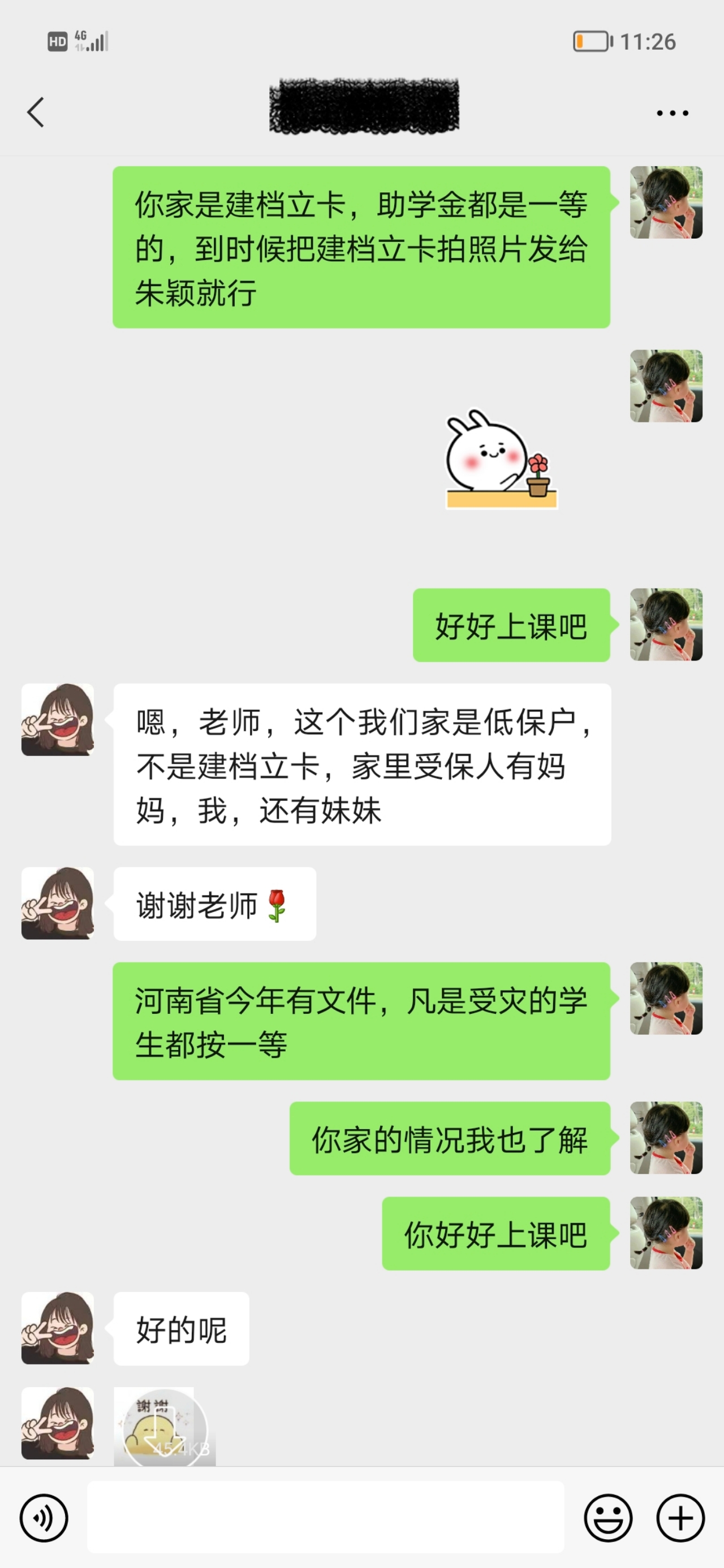 因疫情原因学生暂时未返校,我院辅导员采取线上主题班会宣讲和重点人沟通的方式对学院困难学生进行了摸底排查,向学生宣传资助政策、鼓励家庭经济困难学生认真学习。特别是对“原建档立卡学生、低保、城市困难职工家庭的子女和特困人员、残疾人子女、孤儿、残疾儿童以及受本次疫情及河南汛灾影响较大学生等特殊人群进行了深入的了解和谈话沟通,确保学院能够准确的掌握学生的真实状况。