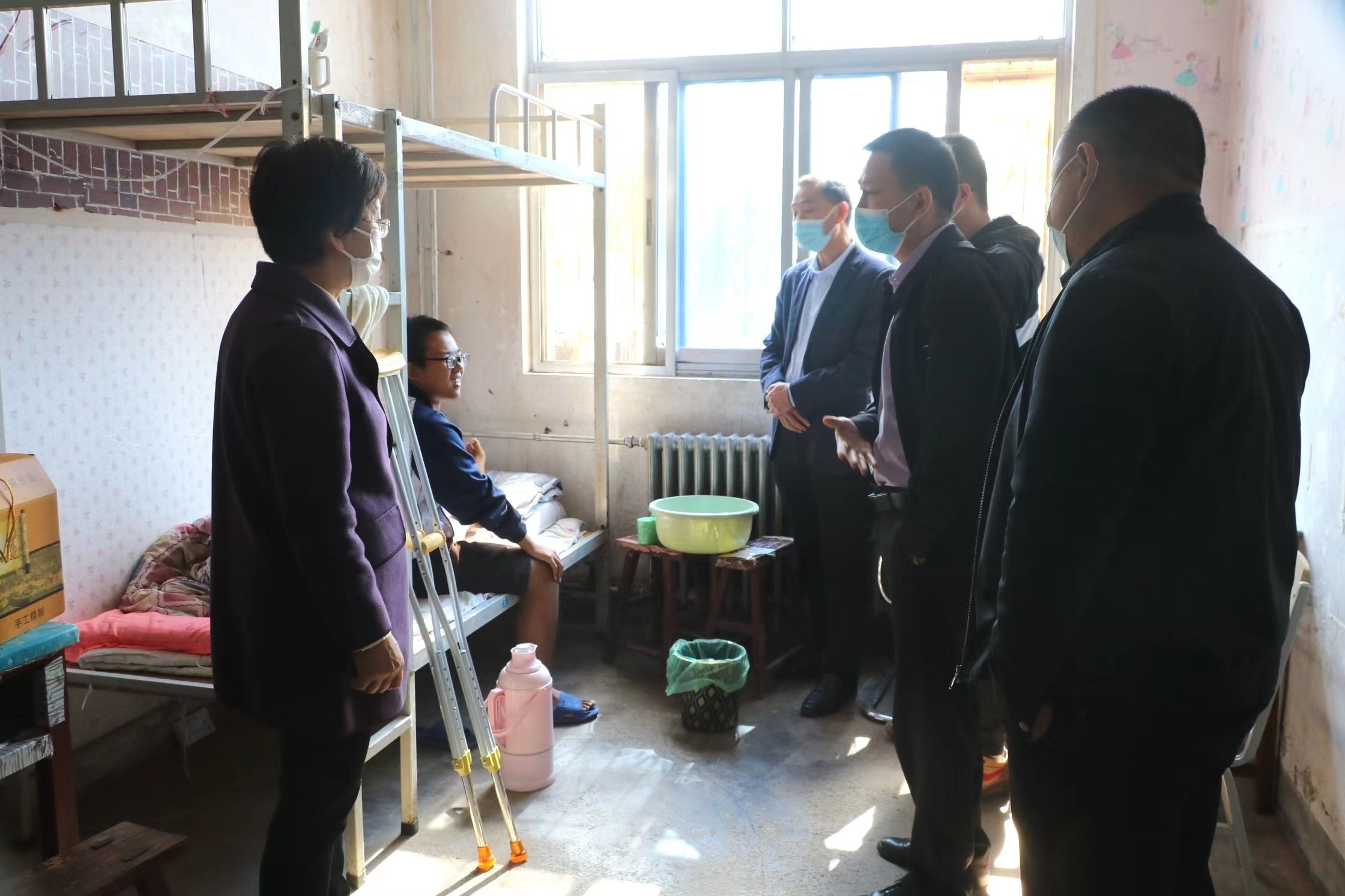 此次走访慰问的学生是一名2022级贫困生,该生在国庆假期期间腿部意外受伤导致无法行走,目前在宿舍养伤。williamhill中国领导老师十分关心学生的身心健康,前往学生宿舍详细询问了该同学的受伤情况和治疗情况,并为他送去了牛奶、面包等慰问品。张斐然院长叮嘱受伤学生注意休息,谨遵医嘱,鼓励他继续保持积极乐观的心态,祝早日恢复健康。党委书记孟学超向学生送上了爱心人士的捐助,并叮嘱学生在学习和生活等方面存在任何困难都可以跟辅导员或者学院反映,学院领导老师一定会尽全力帮其解决问题,学院永远是他坚强的后盾。