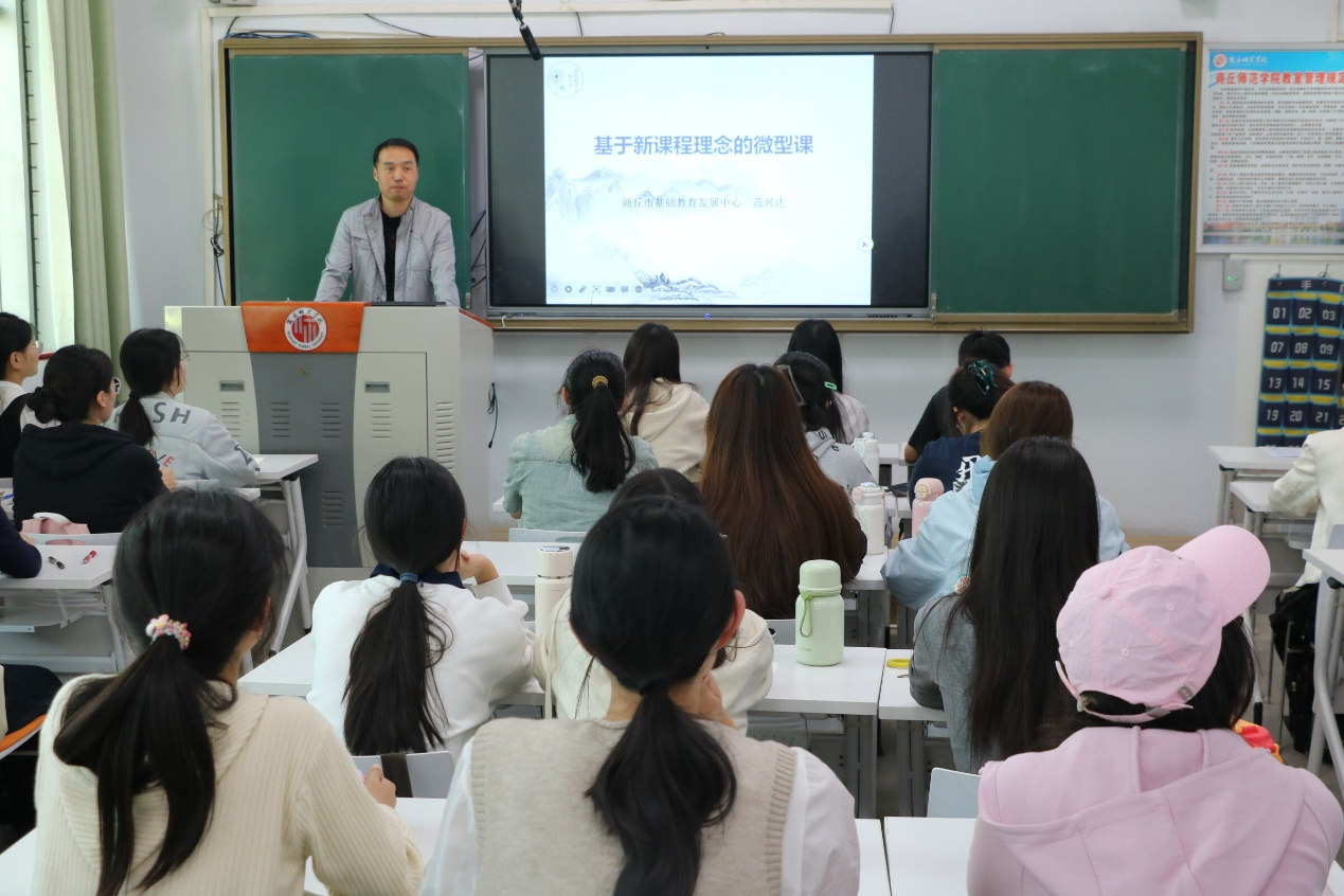 课程伊始,任磊副院长向同学们介绍了范兴达老师简介,并对他的到来表示热烈欢迎,他希望同学们认真学习知识,积累经验。随后,范兴达介绍了微型课是浓缩的课堂教学,具有“短、小、精、巧”特点,用于检测教师素养。对比微型课与说课、微课的区别,在教师专业成长过程中起到引领、示范作用。随后,范兴达又进行实操指导,分享快速写教案、精准引课题、完善教学环节等经验。此次分享让工作坊的同学们收获颇丰。通过此次培训,同学们清晰掌握微型课特性,能更好地将理论运用到实际教学中,在设计教学方案时更精准把握节奏与重点。