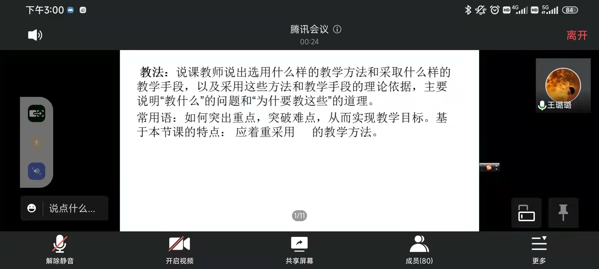 讲座开始,王璐璐老师以生活中实际例子销售的盈亏引出本次讲座的主题《如何说课》,以互动的形式与工作坊学员交流“说课是什么,并由此带领学员共同学习了说课的内容、方法和技巧、基本原则以及如何正确理解说课。随后,王璐璐老师举出优秀案例带领学生进行欣赏学习,让大家更为清晰的理解了说课的进行。之后,针对部分学生对说课过程存在疑问,进行了详细的解答。最后,王璐璐老师对此次说课进行总结,并鼓励大家明确目标、养成习惯、持之以恒,努力提升自身的教学素养。