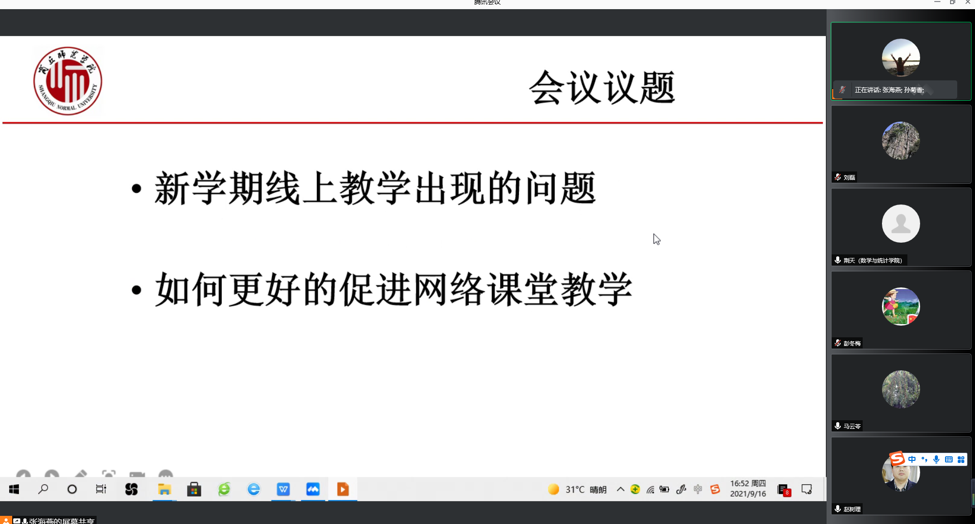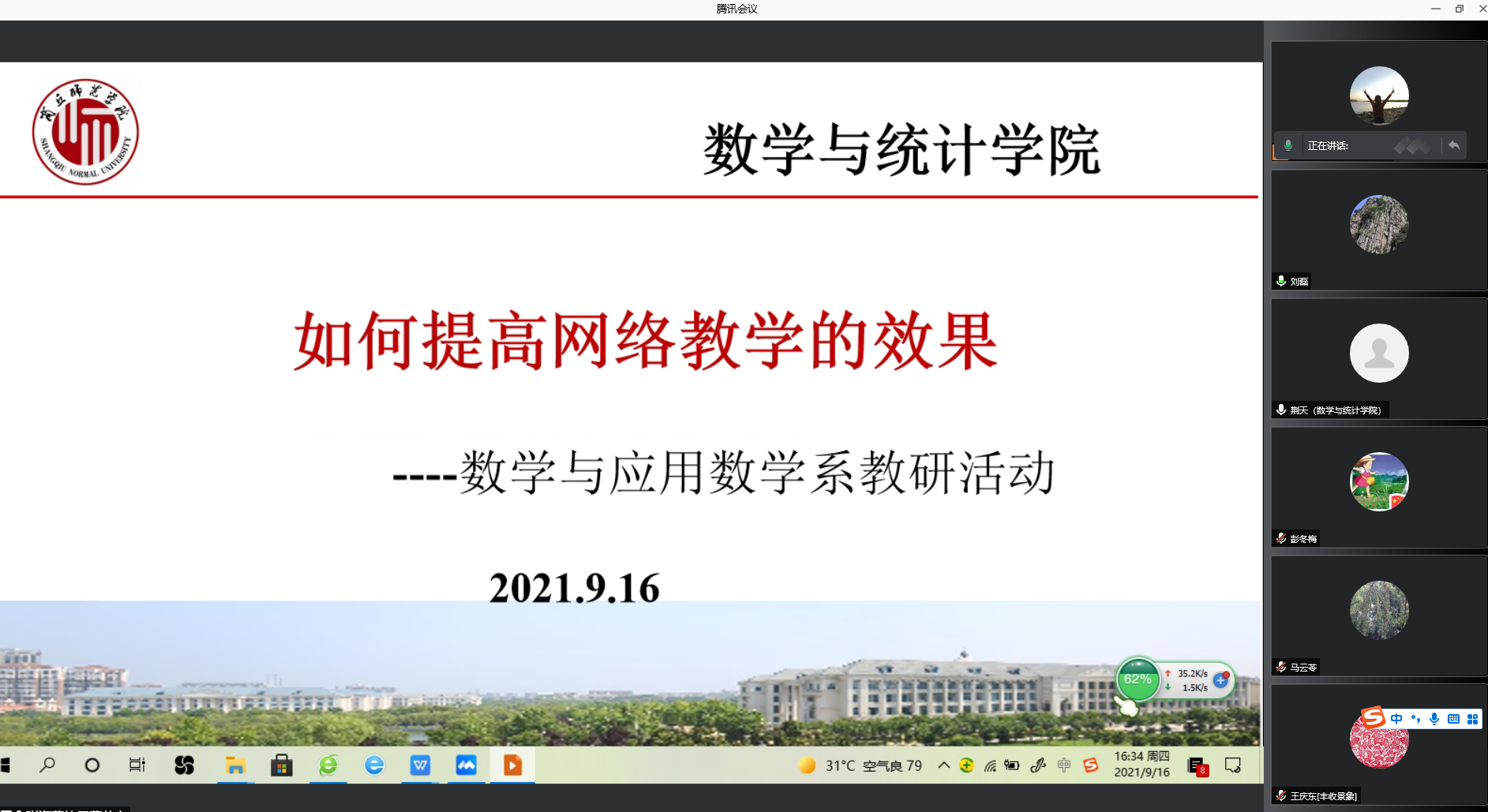 为落实网络教学的各项教学任务,更好的提高线上网络教学的效果,9月16下午,williamhill中国数学与应用数学系通过腾讯会议召开了教学研讨会,会议由系主任张海燕主持,系全体教师参加。