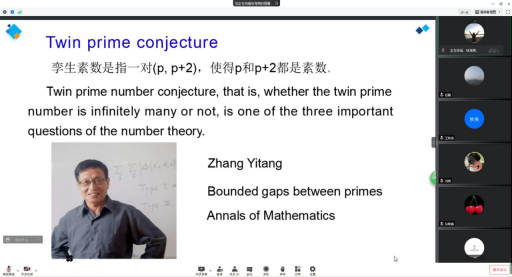 此次观摩活动,首先由张海燕老师分享《数学专业英语》课程中的一节课“Function concept”。她先从函数在纯粹数学和生活实践中的广泛应用讲起,在介绍专业词汇的同时,让学生领会数学知识的重要性,有益于建立学生的学科自信。从关于素数的相关函数,引入当今数论界风云人物张益唐,他大器晚成,一鸣惊人,在孪生素数方面做出了突破性工作。让学生感受纯粹数学的魅力,数学人坚持做数学研究的执著与热爱。