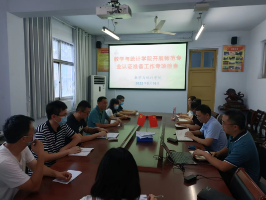 williamhill中国为全面推进师范类专业认证工作,进一步强化认识、查找不足、积极整改,确保数学与应用数学专业能顺利通过认证,8月16日,院长张斐然主持师范专业工作组开展数学与应用数学专业认证准备工作专项检查,书记孟学超、副院长刘磊和九个小组组长参加专项检查工作。