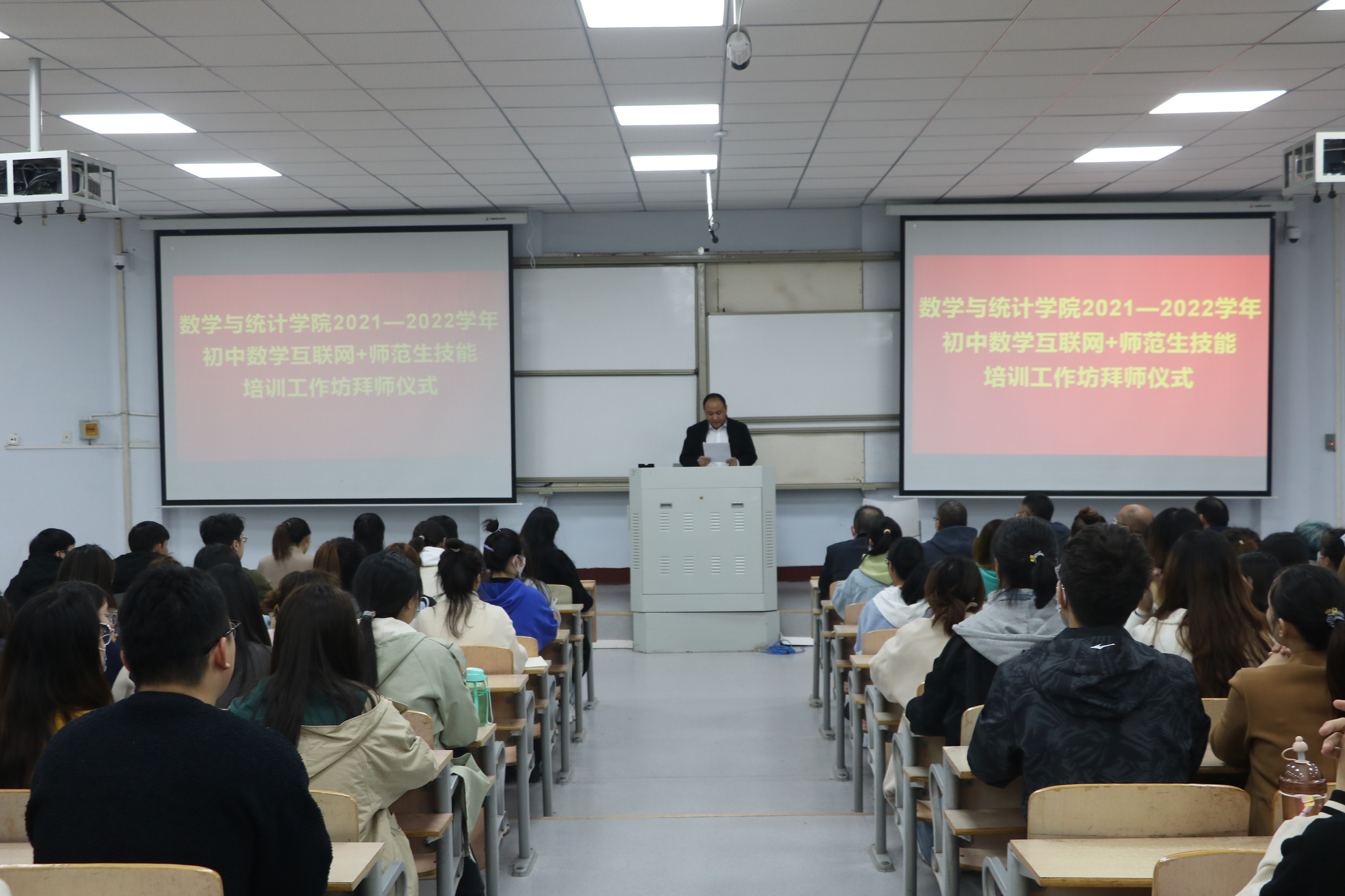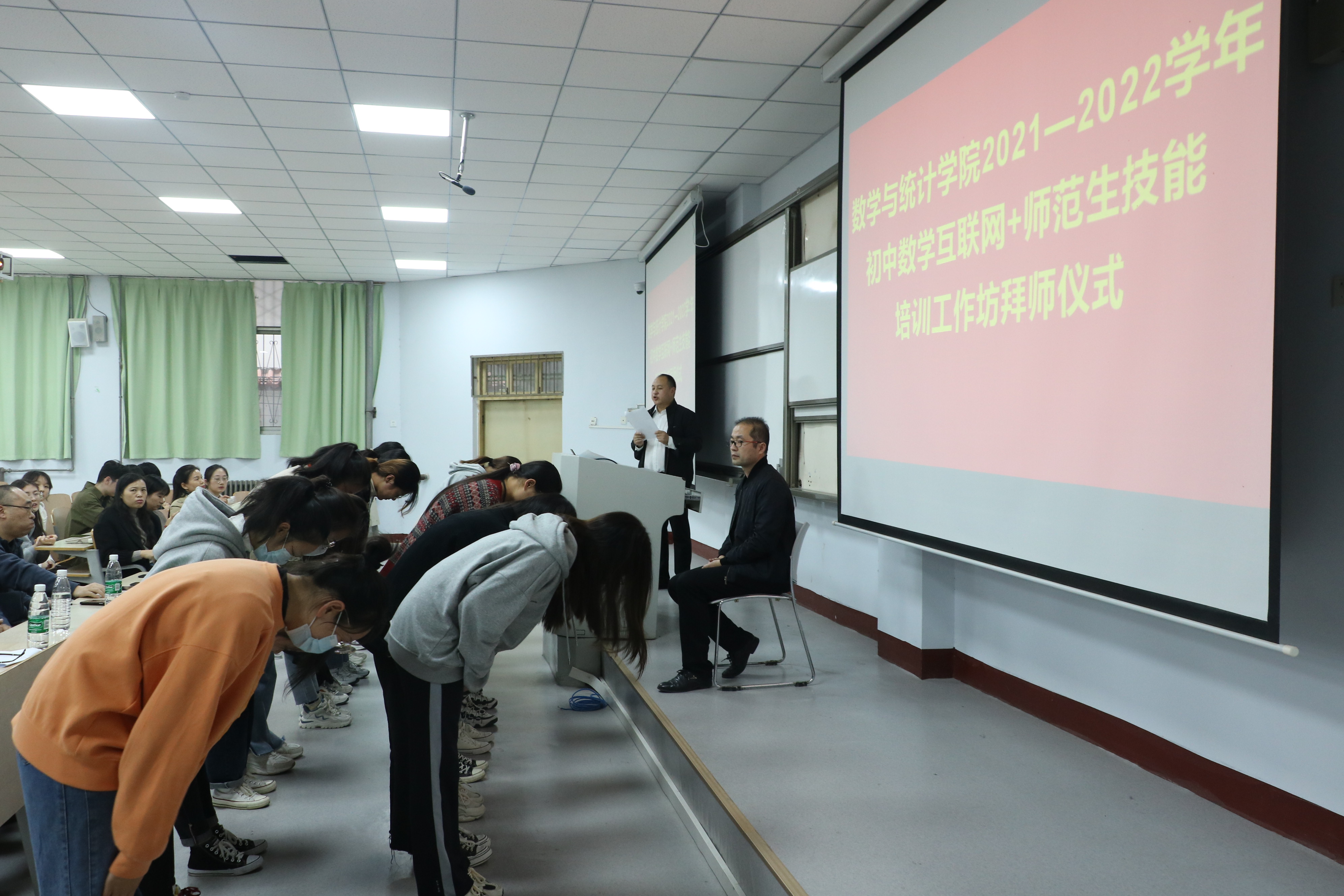 工作坊启动仪式共有师生见面会、拜师仪式和指导老师讲话三个环节。师生见面会以一线名师介绍和师生互动的方式进行,会上刘磊对精心遴选的10位工作坊坊主逐一做了详细介绍,随后坊主和所带的110名数学与应用数学专业学生进行了充分的交流。